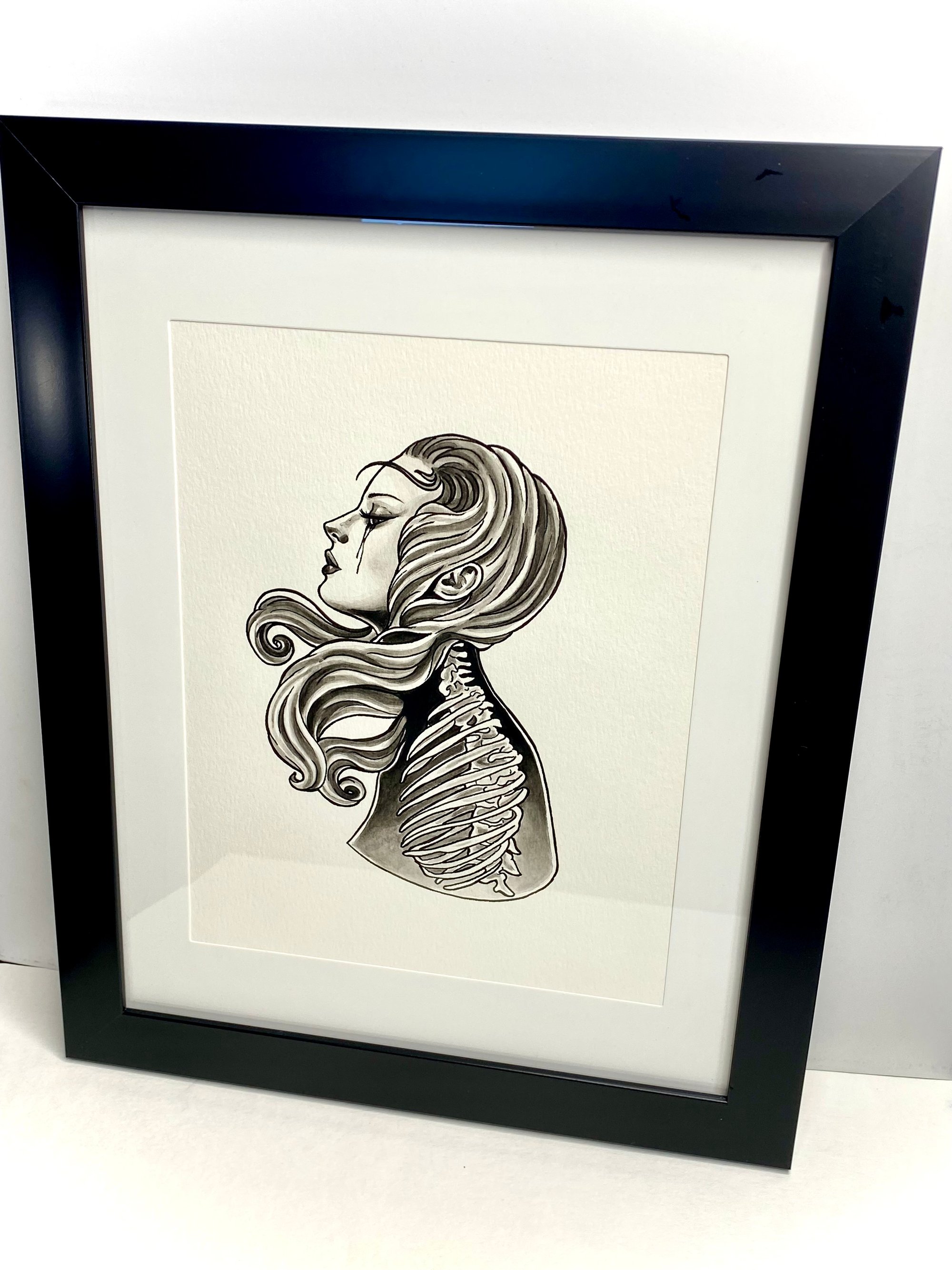 Original Anatomy Girl Painting, Framed 9” x 12”