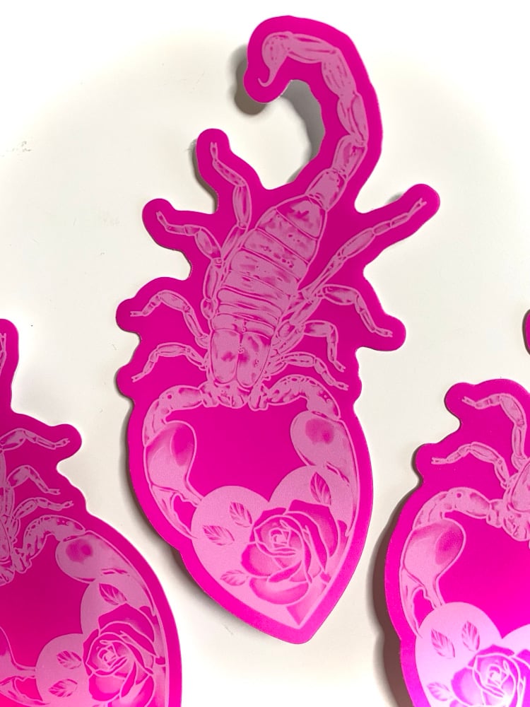 Color morph sticker, pink by default, turns purple when cold. Perfect for an accessory for bottles, or anything with tempature change. Original art and design